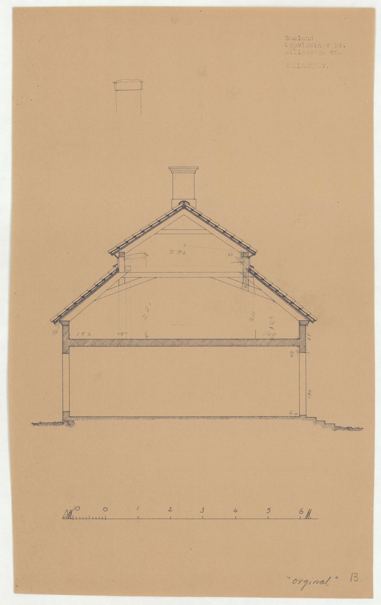 Titel: Skogaholms herrgård. Biblioteksflygeln. Sektionsritning. GULLASKRUV.