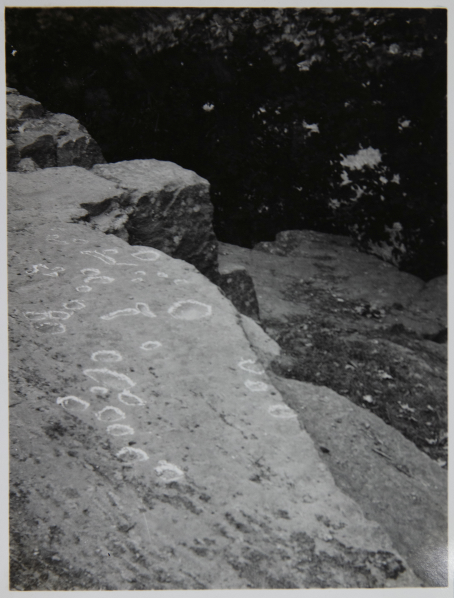 Vargön. Berghäll med skålgropar