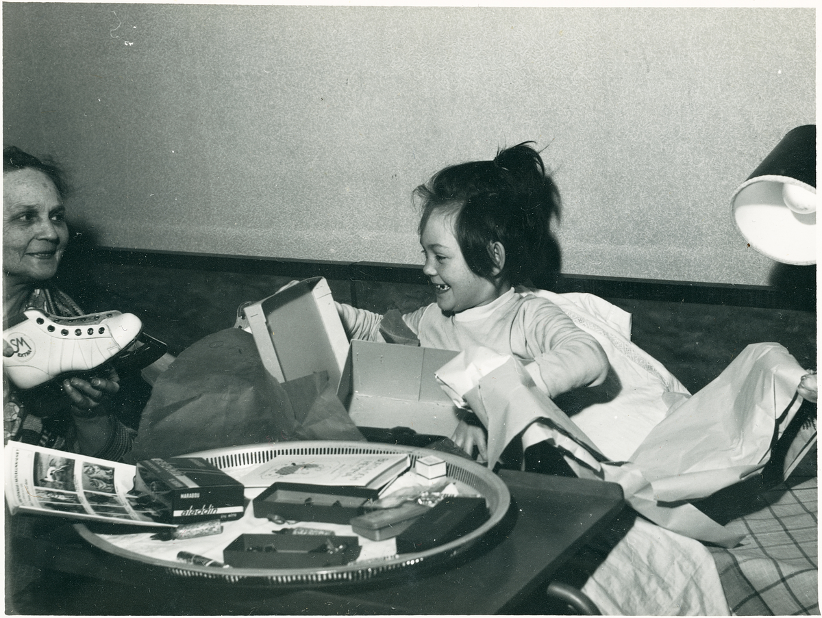 Vänersborg. Torborg fyller 8 år. Mormor Nanny Nyström håller fram en skridsko