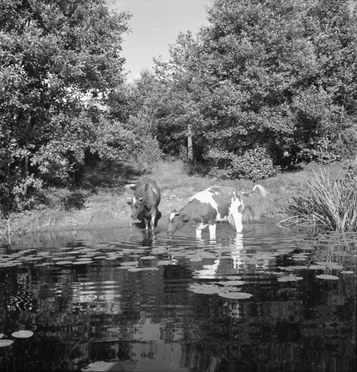 Kor dricker vatten i ån