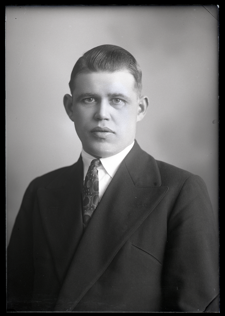 Titel: Mansporträtt. Folke Johansson, Övergården, Hallstahammar. Ur Gustaf Åhmans samling.