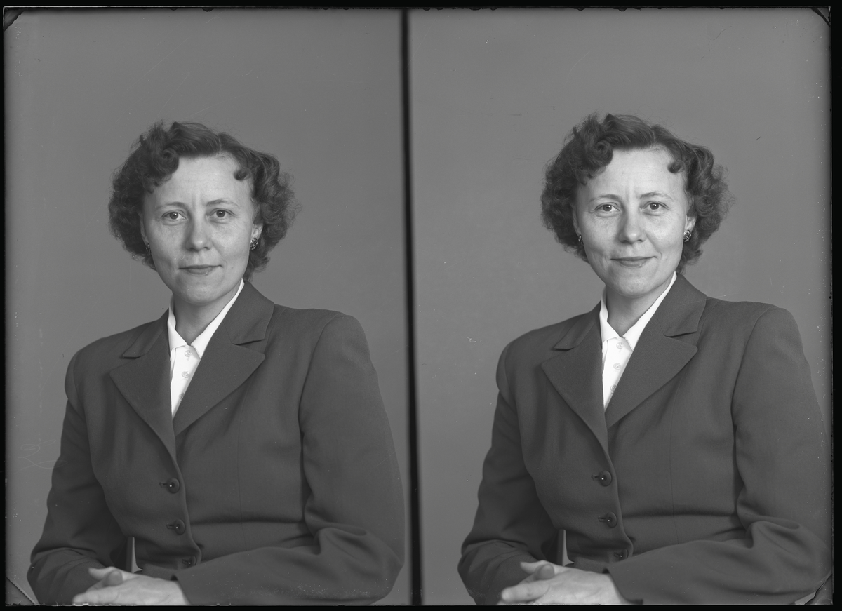 Kvinnoporträtt. Passfoto. Fru Sjöstrom, Kolbäck.