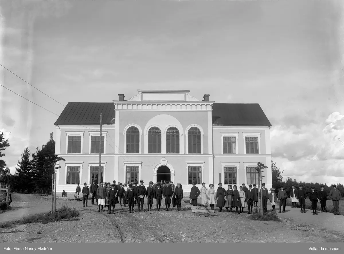 Barn framför Hvetlanda Samrealskola, nuvarande Withalaskolan.