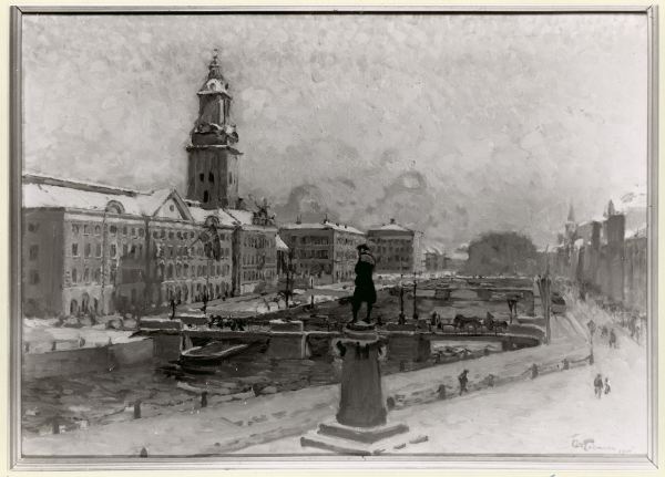 Stora Hamnkanalen m.m. Oljemålning p.d 44 x 62, sign "Ax(el) Erdmann 1911."