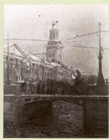 Stora Hamnkanalen vid Käpebron. Oljemålning på duk.