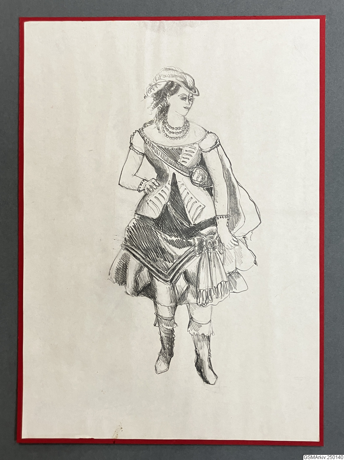 Skiss som troligtvis fungerat som inspirationsskiss till vissa kostymer i Historien om en häst. Eventuellt inspirerad över befintliga fotografier eller bilder.