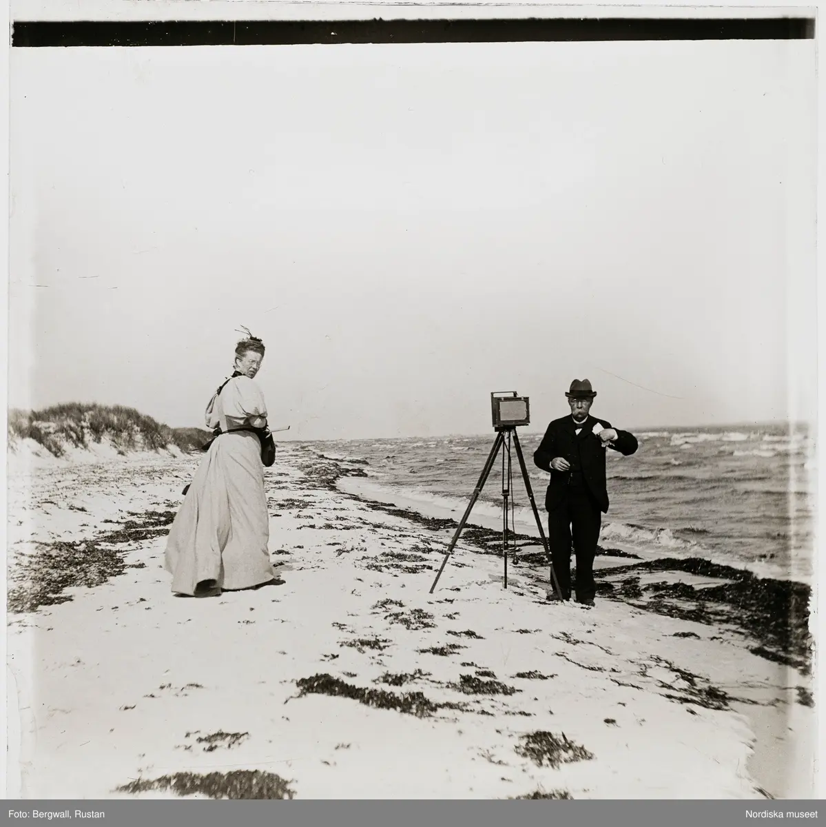 "Arvid Florman fotograferar sin hustru Edla, född Bergwall, på stranden mellan Malmö och Limhamn"