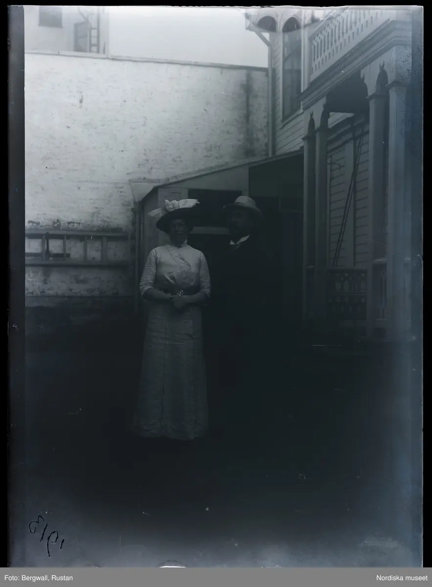 Östersund 1913. "Louise och jag utanför uppgången till vår bostad"