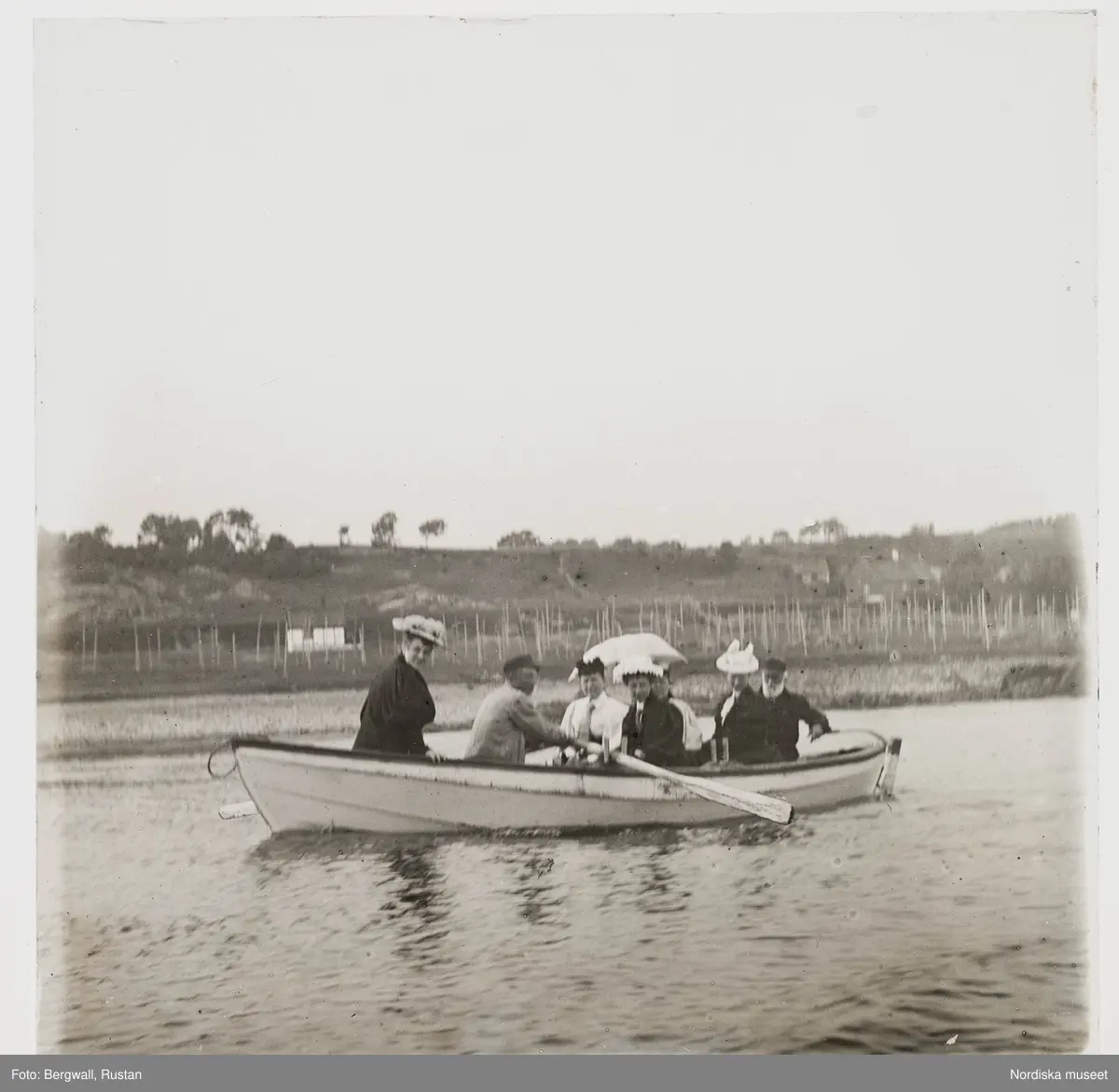 "Arild. Doktor Bergwall styr Valter ror Elisabeth Bergwall i fören. Fru Edla Florman jämte tre okända damer"