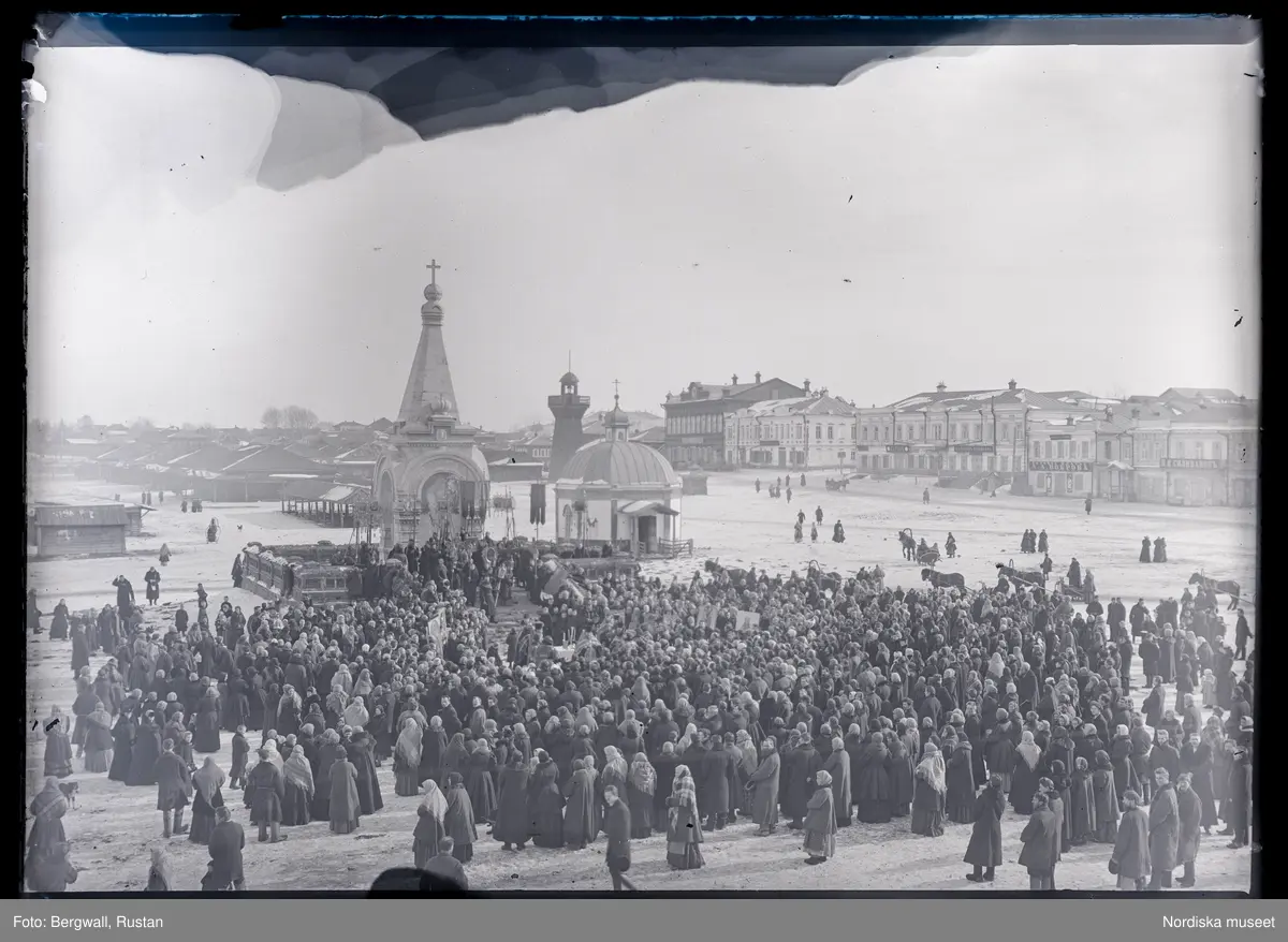 "Minnesmärket över tsar Alexander II rest på torget i N. Tagil. Bilden visar firandet av 40-årsdagen av livegenskapens upphävande (1861) 1901"