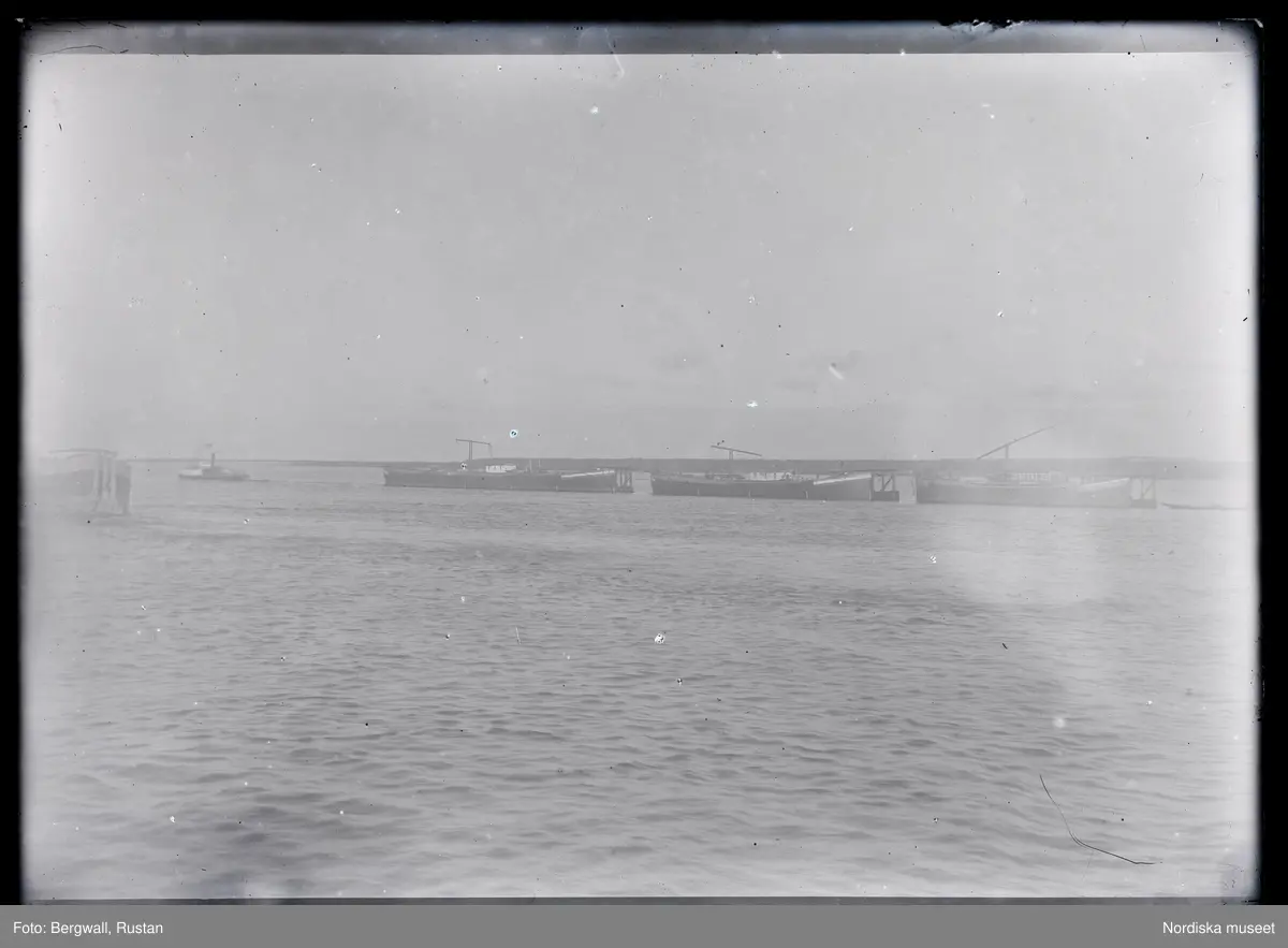 "Från Karna och Wolga. Bogserbåt med pråmar på väg utför Wolgafloden"