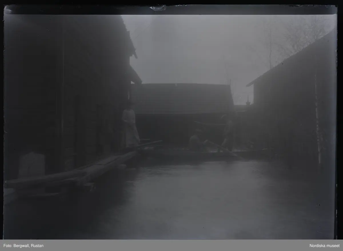 Översvämningarna i Falun 1916. "Gatubild med utlagda broar"