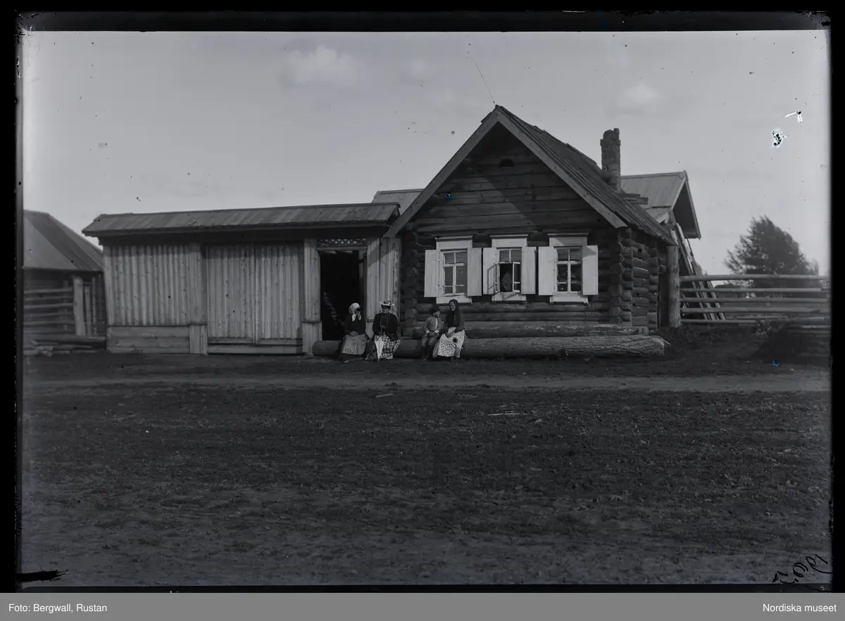 "Nischnij Tagil. Byggnader i N. Tagil. N:o 10 Xenias föräldrahem. Hon sitter utanför och har sin mor till höger"