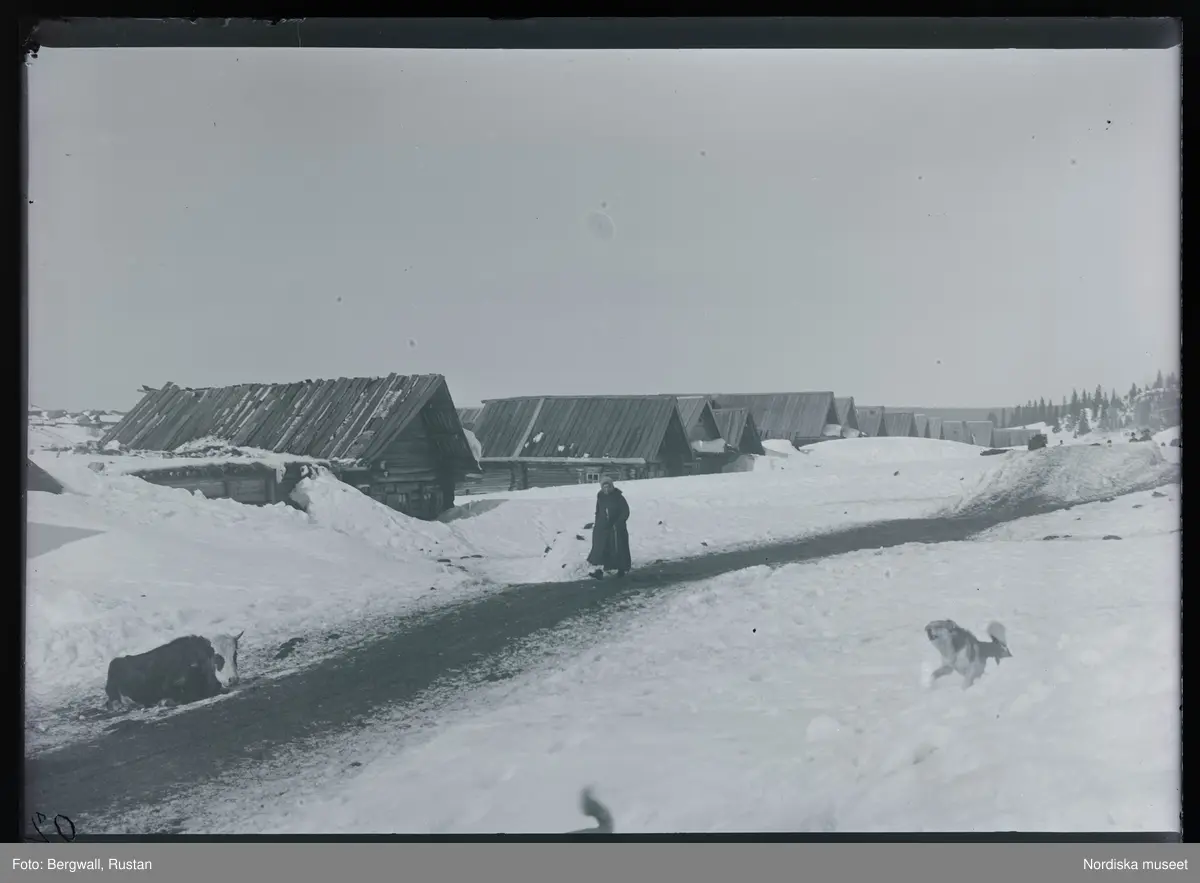 "Wisimo-Utkinski järnverk. En bigata. En vinterbild med ko i snö"