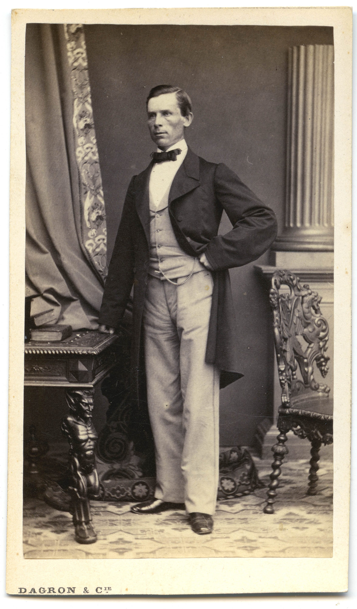 Porträtt på en man i helfigur, stående.