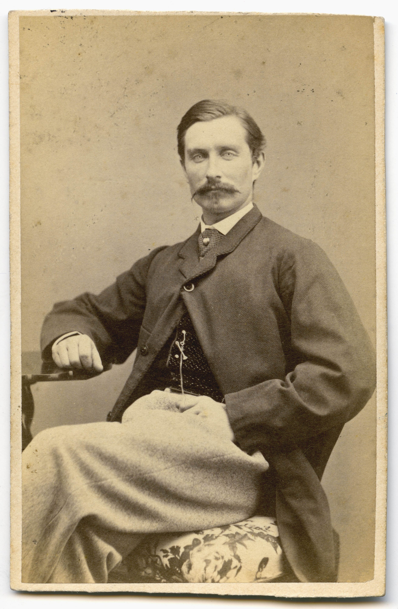 Porträtt på en man sittande i helfigur. Pehr Salomon Mannerstedt löjtnant vid Jönköpings regemente I12 Skillingaryd.
