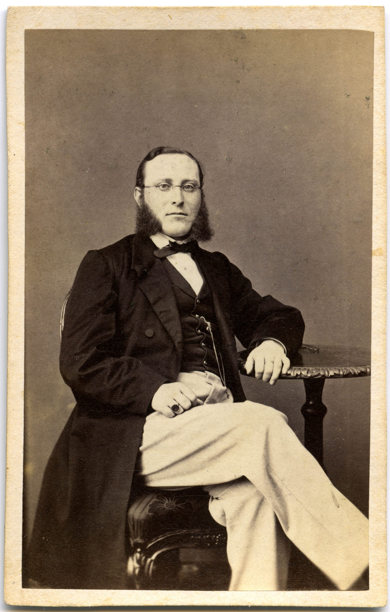 Porträtt på en man sittande i helfigur.