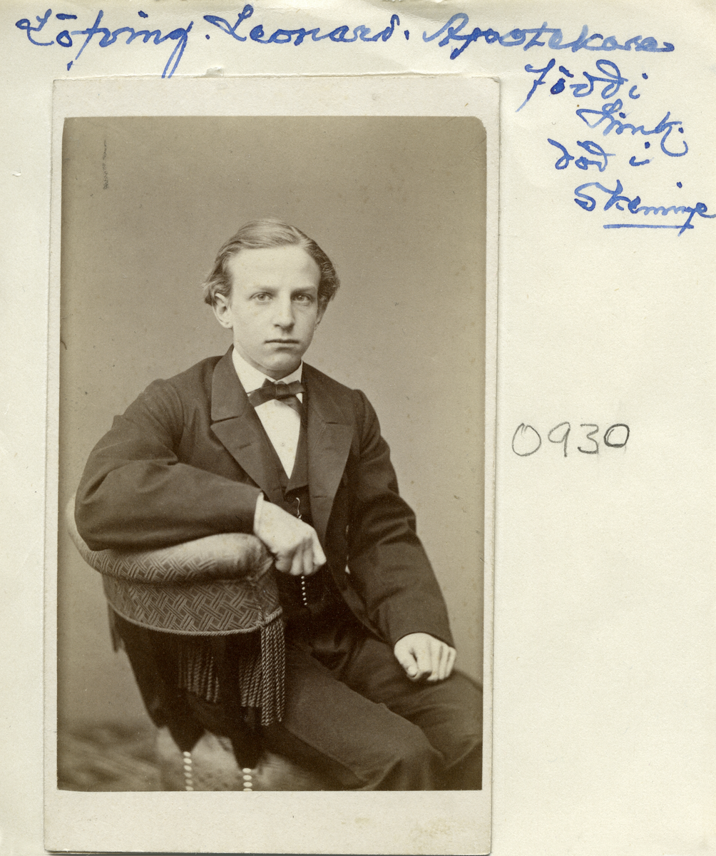 Porträtt av ynglingen Leonard Löfving. Son till konditor Johan Petter Löfving och makan Anna Chatarina Engström. Vidare i livet apotekare i Skänninge. 1860-tal.