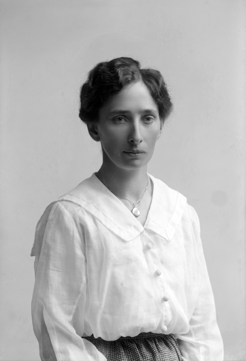 Frida Kall i Linköpingsfotografen Maria Teschs ateljé i Linköping något av åren 1910 - 1916. Då i 25-årsåldern och ännu boende i föräldrarnas hemman Tyttorps Lillegård i Kumla socken. Hon var annars uppvuxen i Väderstad där fadern till 1910 var grenadjär vid Första livgrenadjärregementet. Senare i livet kom Frida att gifta sig med Carl Teodor Hård och driva ett mindre lantbruk i Stava söder om Ödeshög.