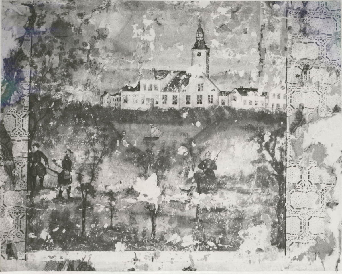 Väggmålning på stock i Backeby, Dalebo i Blackstad.