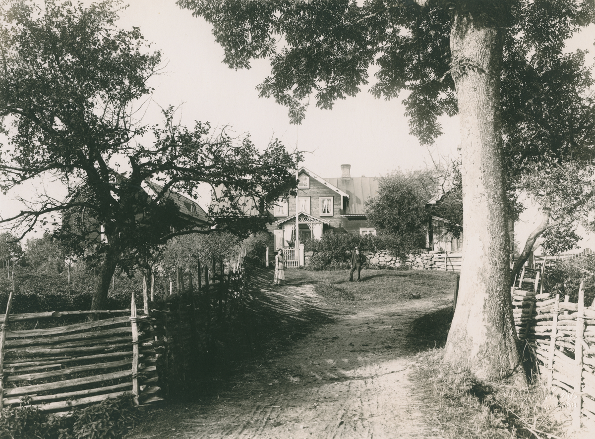 Eventuellt är det ägaren Anders Lorentz Petersson som står på gårdsplanen tillsammans med sin fru Clara Sofia Jonsdotter. Fotografiet är taget under 1890-talet.