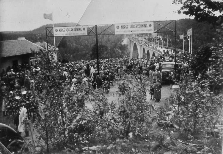 Medföljande text: "Sv/v foto av folkliv under invigningen av bron".
