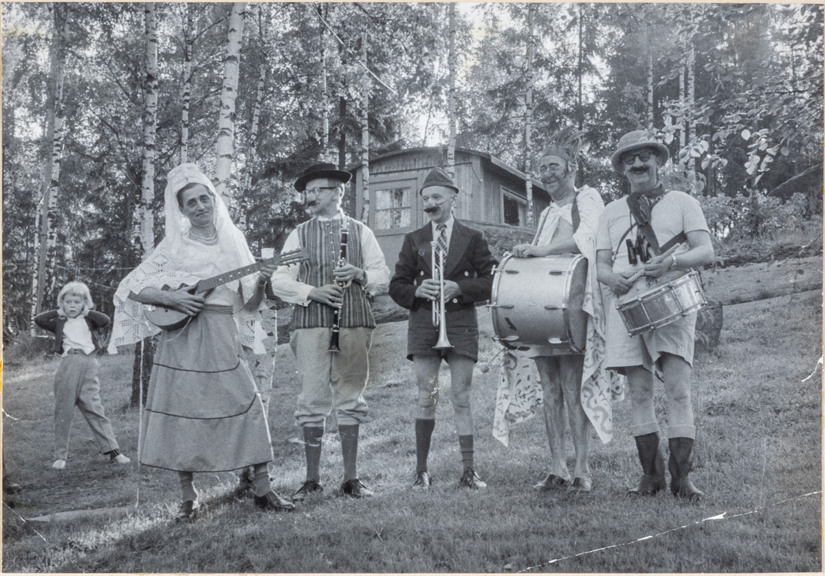 Några utklädda musikanter vid Kjell Anderssons 50-årsdag 1957.