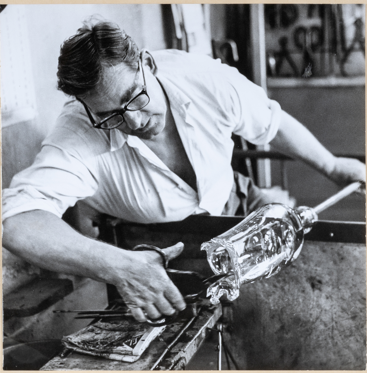 Kjell Andersson formar och klipper en vas.