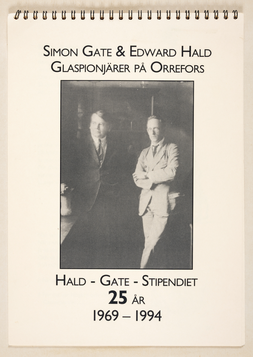 Skrift angående Simon Gate & Edward Hald, Glaspionjärer på Orrefors,