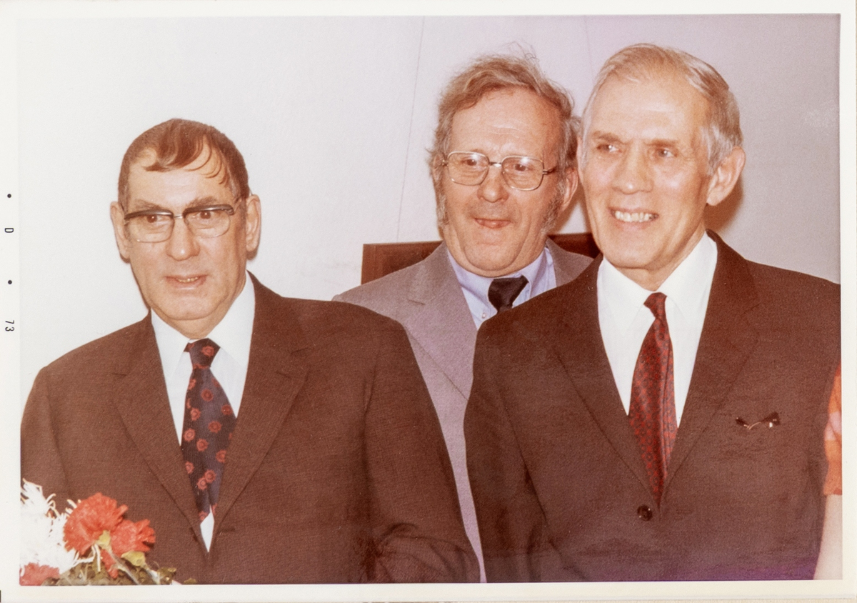 Fr.v.hyttmästare Kjell Andersson (Strömbergshyttan), hyttmästare Bengt Heintze (Kosta) och hyttmästare Henry Bjerding (Orrefors).