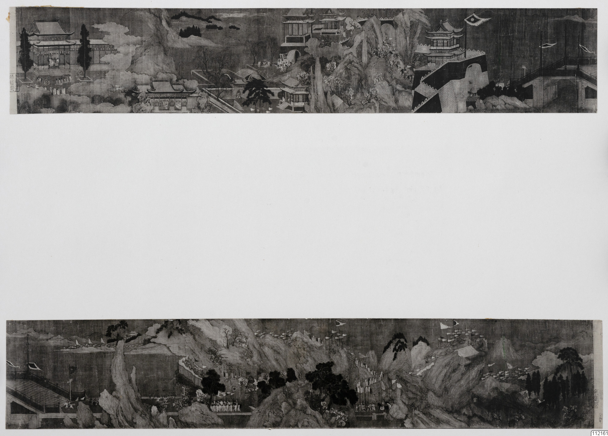 Konstverk målat av Chao Po-Chu. Den första Han-kejsaren gick in i Kuan-Chung. Signerad hand-scroll. På hans sätt. Detalj.