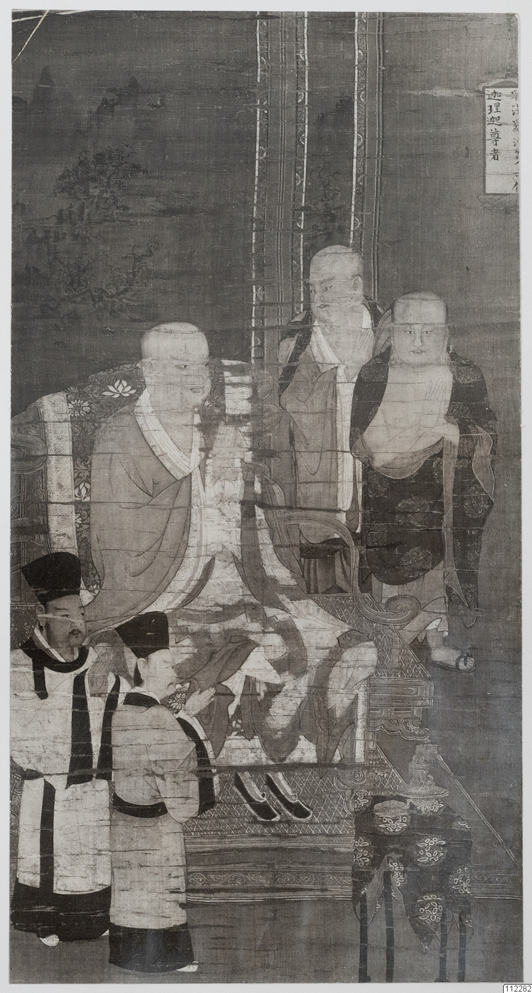 Konstverk målat av Lu Hsin-Chung som avbildar den sjätte arhaten som ber.
