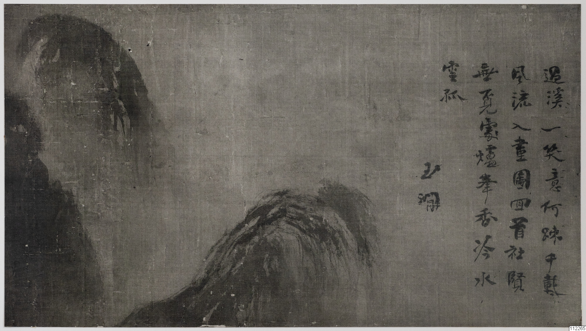 Konstverk målat av Yu-Chien (Jo-Fen) som avbildar en utsikt över Lu-Shan i dimma.
