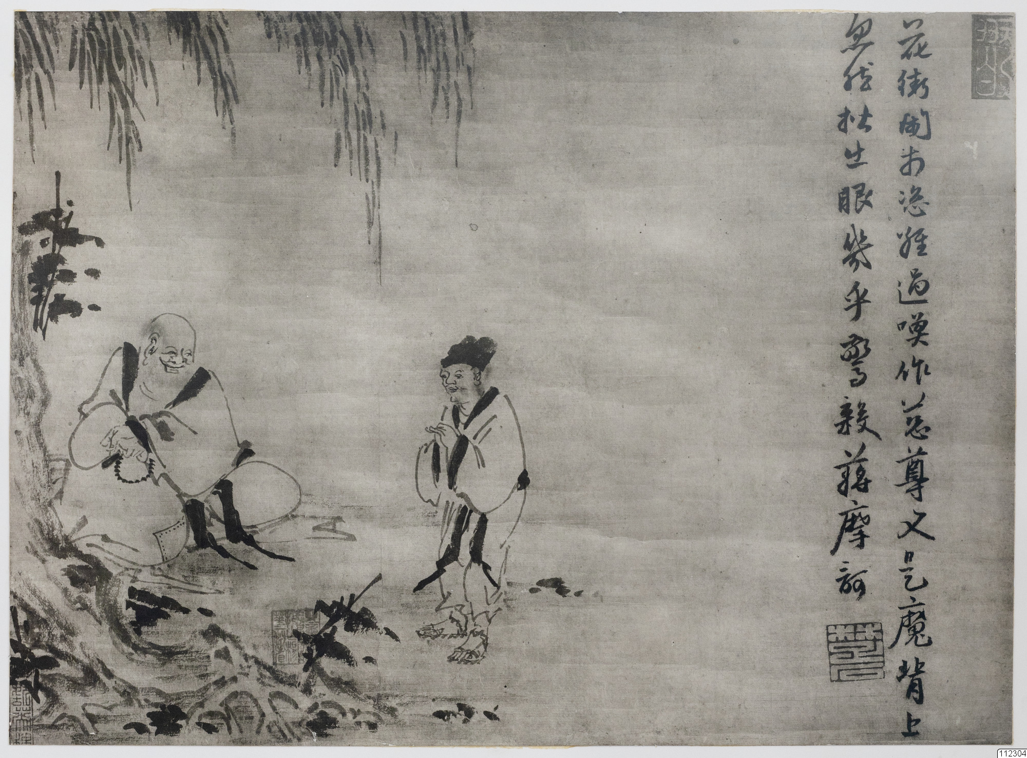 Konstverk målat av Lang K'ai som avbildar två män, en sittande och en stående.
