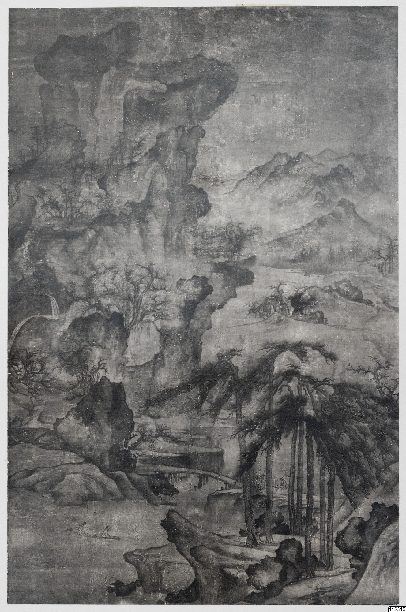 Konstverk målat av Li Shan som avbildar en bergsbäck mellan klippiga stränder.