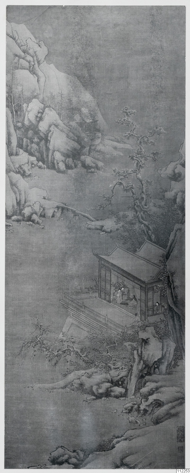 Konstverk målat av Wang Shen som avbildar en paviljong vid en bäck.