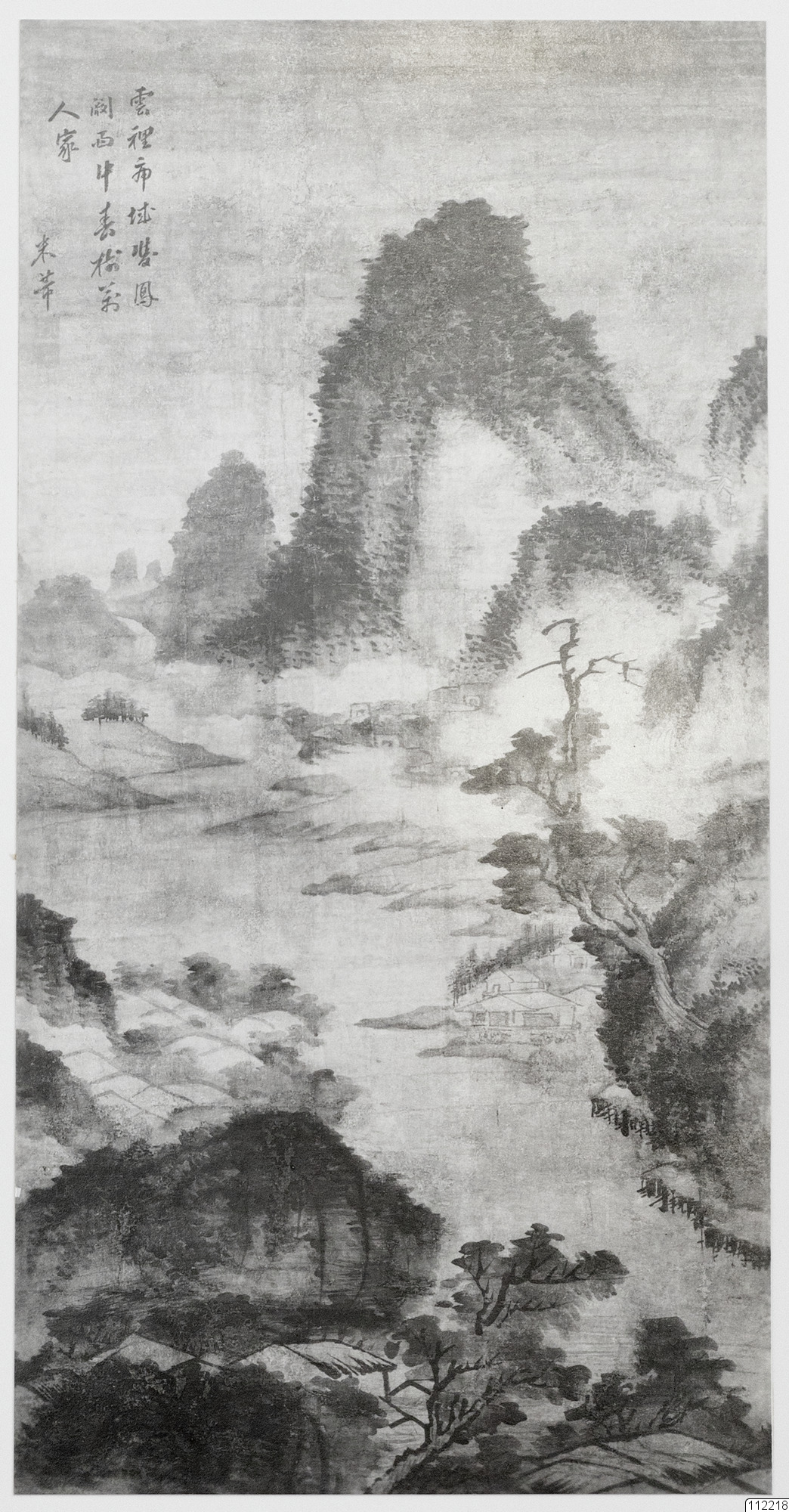 Konstverk målat av Mi Fei som avbildar floddalen i bergen.
