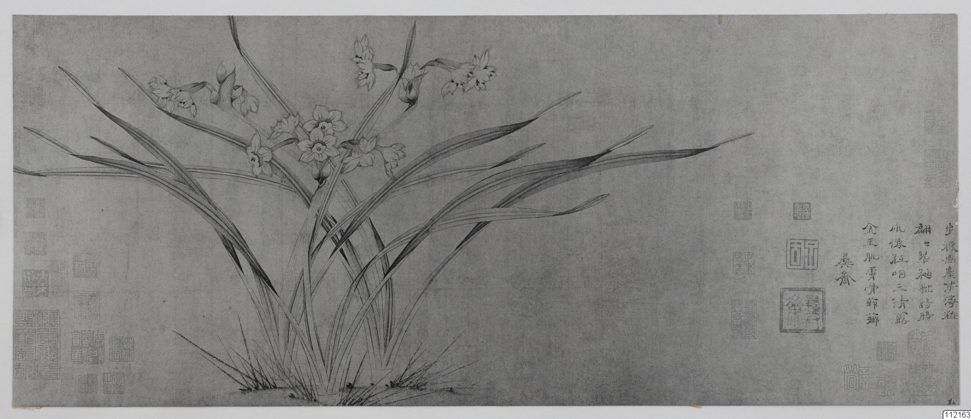 Konstverk målat av Chao Meng-Chien. Narcissi. Handscroll. Signerad.