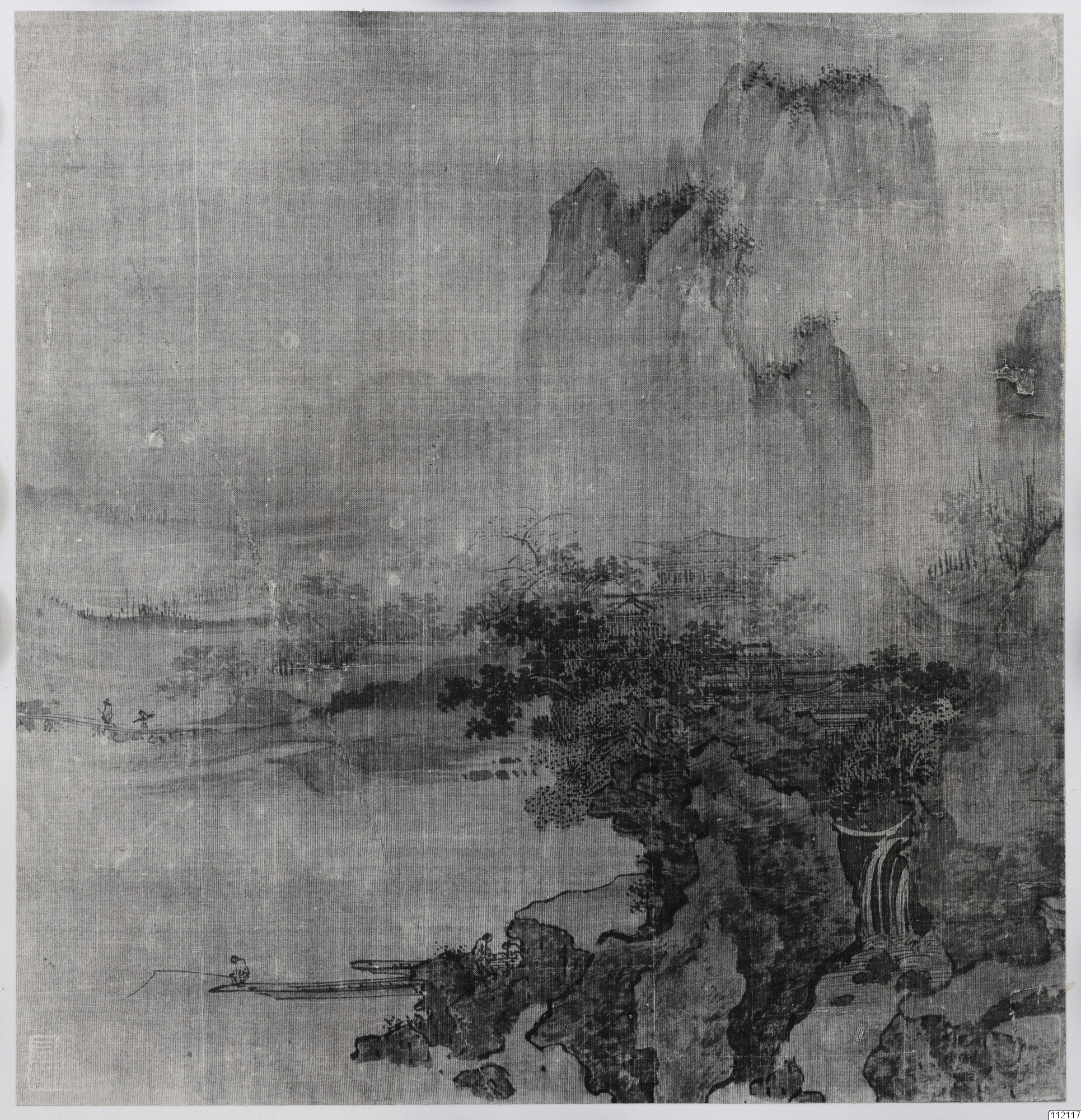 Konstverk målat av Hsia Kuei. Utsikt över en floddal. I hans stil.