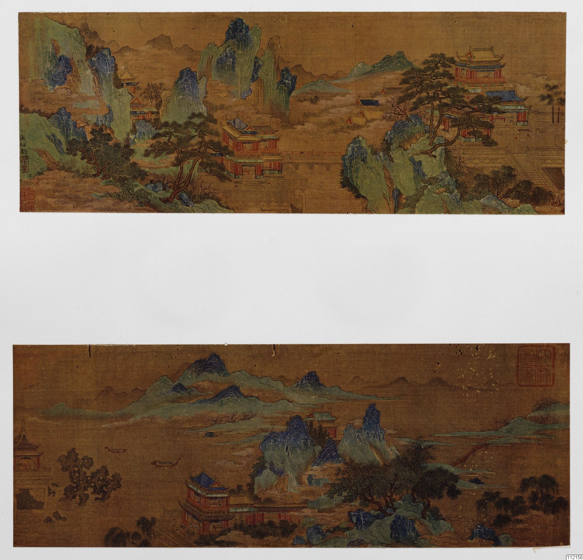 Konstverk målat av Chao Po-Chu. Vårmorgon vid Han-kejsarnas palats. En signerad miniatyrrulle från senare datum.