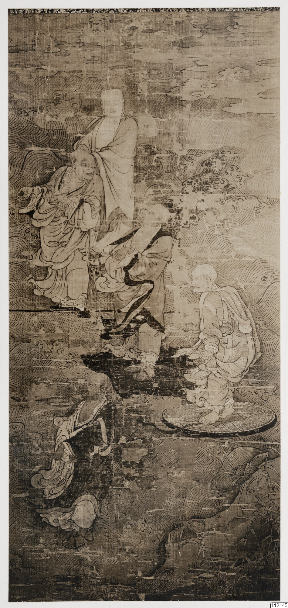 Konstverk målat av Chou Chi-ch'ang. Fem arhater i bambulunden. Daterad 1180.