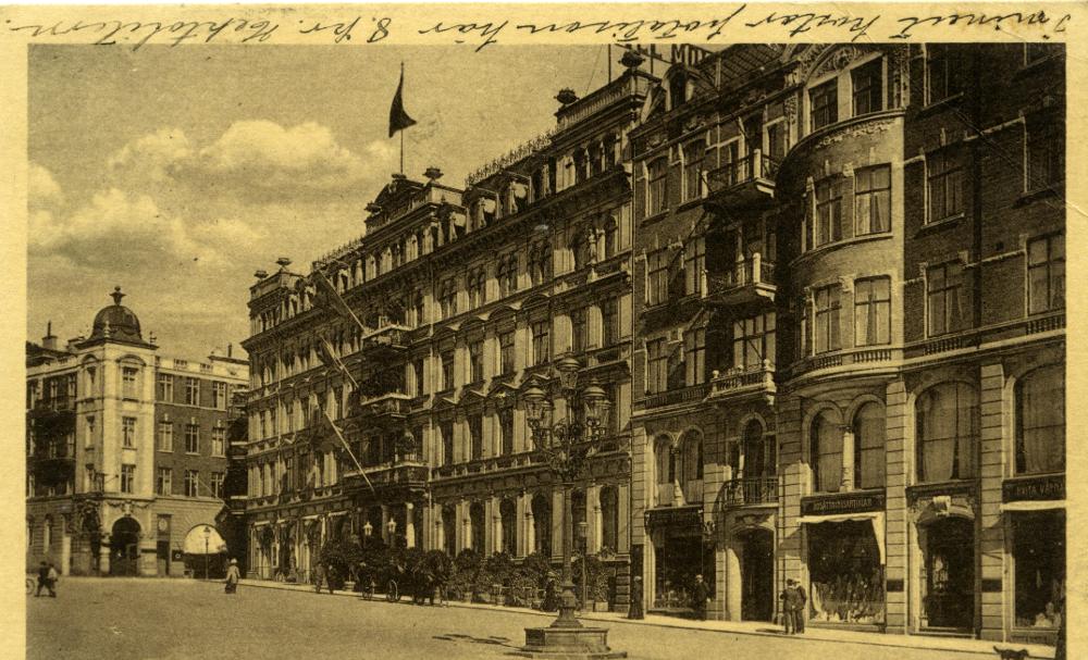Svartvitt fotografi föreställande stortorget och hotell Mollberg.