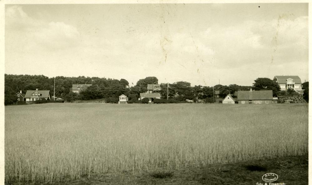 Svartvitt fotografi föreställande Hittarp fotograferat från havssidan.