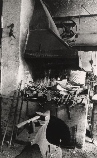 Bild av Enoch Nilssons verkstad med städet och härden.