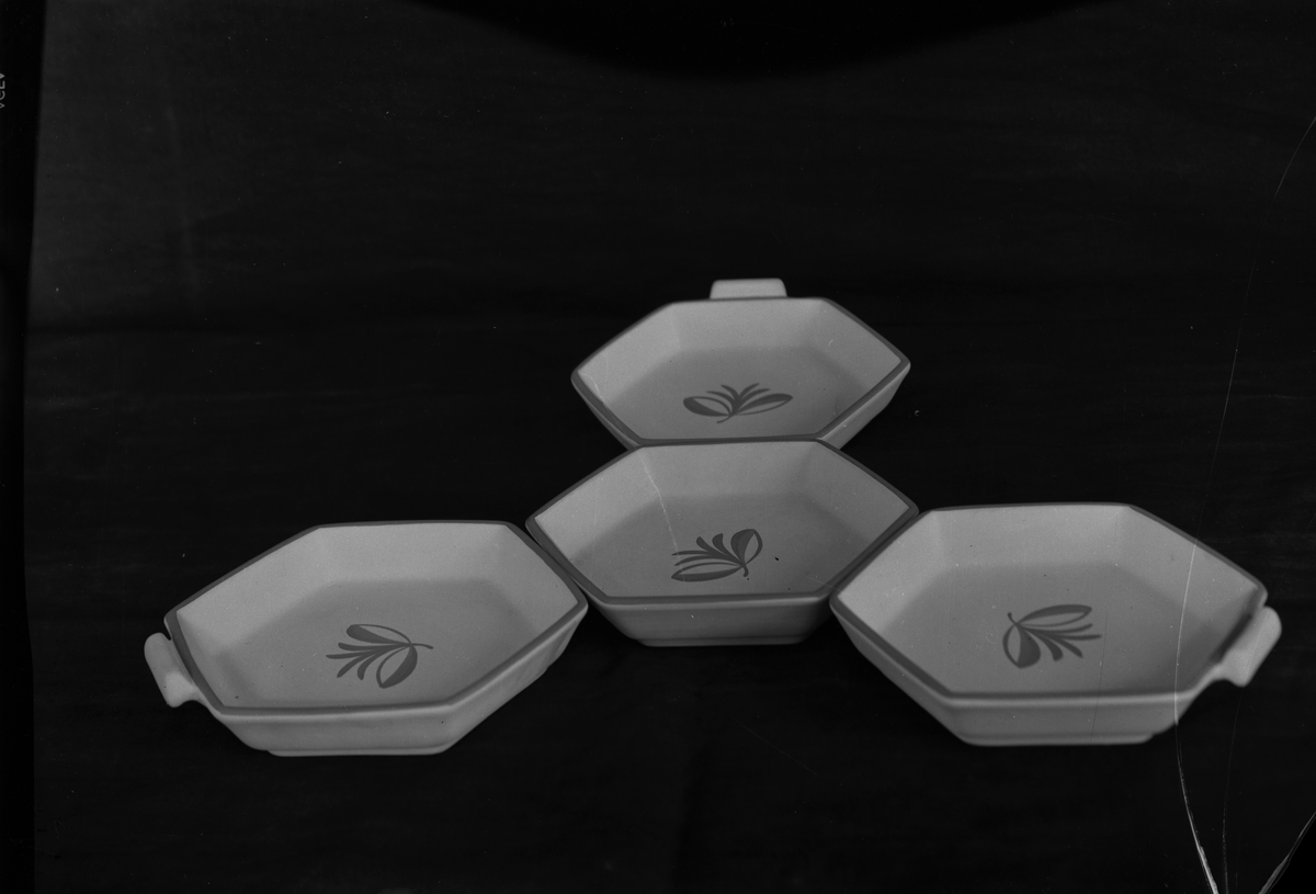 Uppläggningsskålar i dekor Blått band från Gefle Porslinsfabrik.