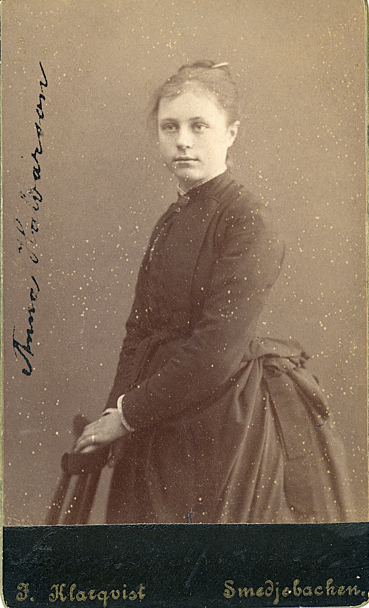 Kvinnoporträtt. Text framsida kort: "Anna Halvarsson".