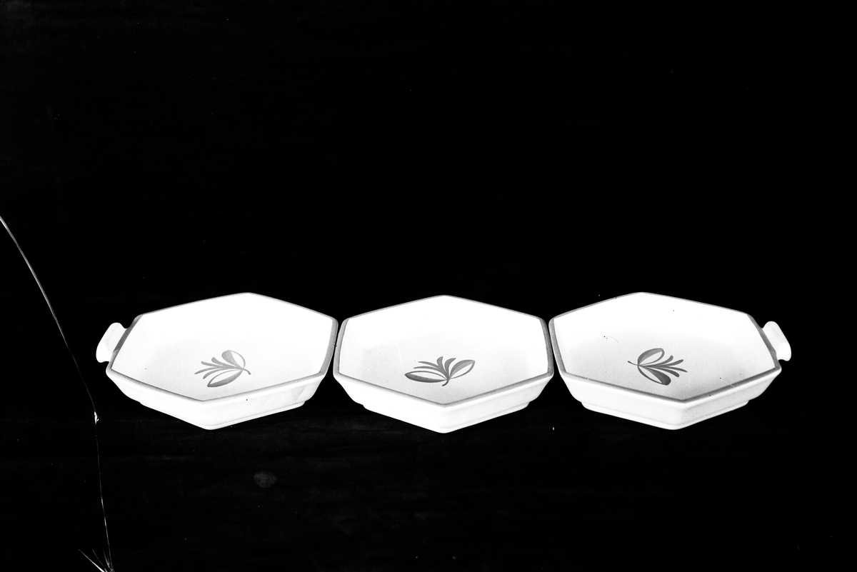 Skålar i dekor Blått band från Gefle Porslinsfabrik.