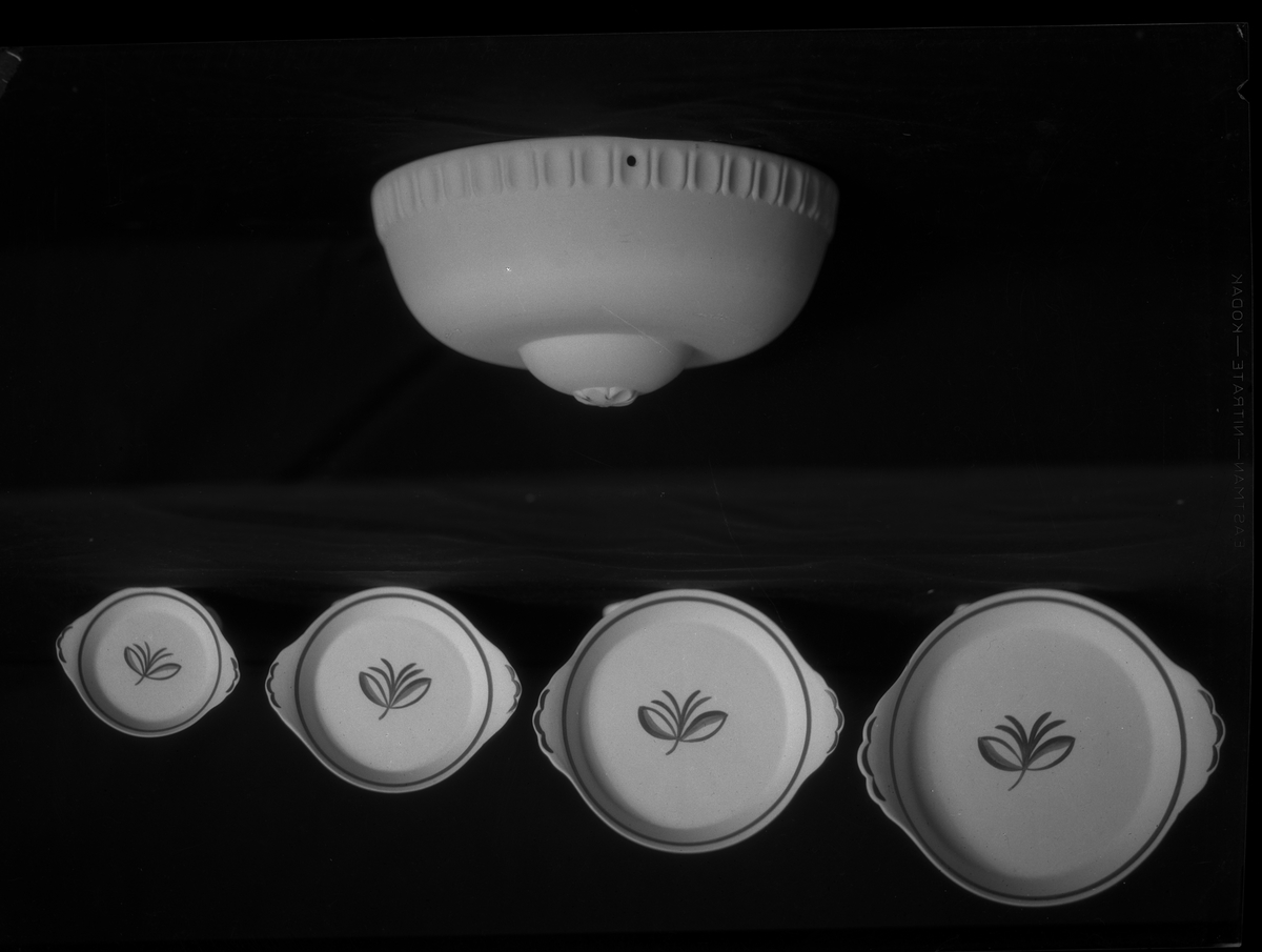Ampel och uppläggningsfat i dekor Blått band, från Gefle Porslinsfabrik.