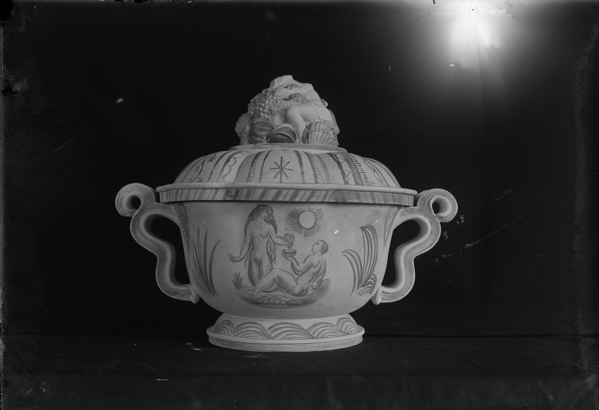 Vinbål med skulterat lock.