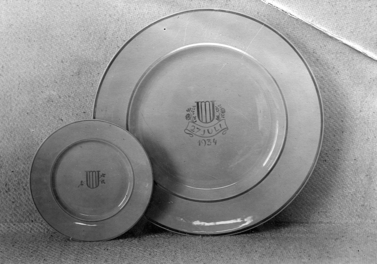 Två minnestallrikar från Gefle Porslinsfabrik.